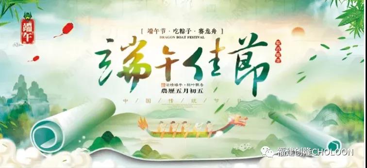 在端午佳節(jié)來臨之際,福建創(chuàng)隆公司祝福各位員工、家屬及關心和支持公司事業(yè)發(fā)展的各位領導和客戶朋友端午節(jié)祥瑞安康!