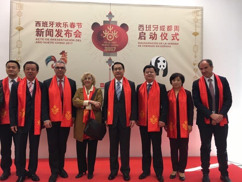 成都市政府宣布啟動“2017西班牙成都周”,向西班牙推廣成都特色文化遺產和中國春節等傳統文化,這是成都第7年向世界推廣中國春節文化。啟動儀式上,具有濃郁四川成都特色的變臉、皮影戲、剪紙等傳統文化展示以及川菜美食,馬德里市長卡梅納女士表示,“我想買張機票,馬上去成都!”(美通社,2017年1月24日成都)