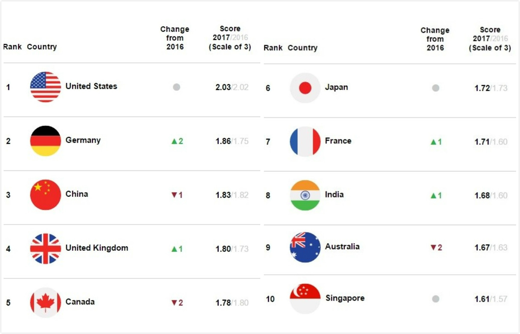 知名管理咨詢公司A.T. Kearney最新的《2017外商直接投資信息指數》報告顯示,3/4的受訪公司計劃在未來三年增加其海外直接投資。盡管地緣政治讓人擔憂,但全球的企業經理們仍然看好全球經濟和海外直接投資的前景。在投資目的地方面,美國連續五年穩居第一,成為最受外商資本青睞的目的地,德國上升兩名至第二,中國則跌至第三名,第四至十名分別是:英國、加拿大、日本、法國、印度、澳大利亞、以及新加坡。聯合國貿易和發展會議的數據顯示,2016年,外商直接投資按年增長11%至3850億美元,美國亦是迄今接受外商直接投資最多的國家。(美通社,2017年4月18日華盛頓)