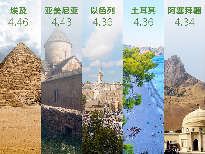 TripAdvisor貓途鷹近日發(fā)布了有關(guān)“絲綢之路”旅行的趨勢分析。結(jié)果顯示,在“絲綢之路”問卷涵蓋的33個國家中,2016年訪問量年增長率最高的10個國家分別是:格魯吉亞,阿塞拜疆,烏克蘭,韓國,亞美尼亞,日本,俄羅斯,吉爾吉斯斯坦,印度尼西亞,伊朗,大部分位于中東、東歐及西亞地區(qū)。全球旅行者評分(總分5分)最高的5個國家也都位于這一區(qū)域,分別是:埃及 4.46;亞美尼亞 4.43;以色列 4.36;土耳其 4.36;阿塞拜疆 4.34。