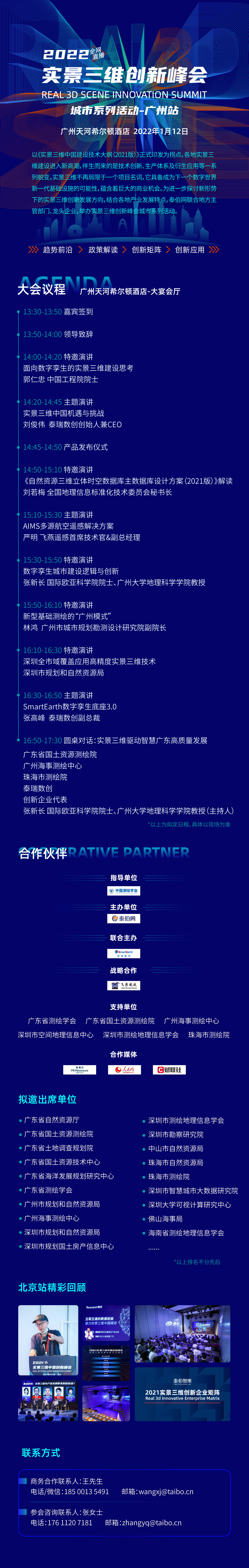 由中國測繪學會指導、泰伯網主辦、泰瑞數創聯合主辦的2021實景三維創新峰會廣州站,將于2022年1月12日重磅開啟!