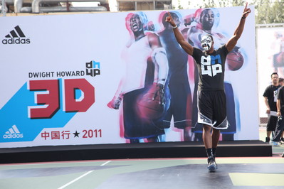 武漢2011年9月5日電 /美通社亞洲/ -- 9月4日,阿迪達斯旗下的籃球巨星 -- 三屆 NBA 年度防守球員德懷特·霍華德強勢登陸武漢,在上午為漢江路迷你旗艦店剪彩揭幕后馬不停蹄地來到武漢體育館,全傾全力奉獻了一場強無雙的力量視覺盛宴。魔獸霍華德延續其一貫的幽默個性,頻頻擺出搞怪表情、動作,把現場球迷逗得捧腹大笑。同時,在武漢體院館內,霍華德騎哈雷摩托的出場方式,全情點燃了武漢球迷的熱情,3D 魔獸不但為球迷帶來了一堂如何變強的訓練課程,還親自披掛上陣,與球迷現場 PK,讓在場的阿迪達斯高中生聯賽的小球員領教了全傾全力的霍華德。此次中國行,霍華德不但帶來了個人專屬 Logo,還向大家介紹了中國行專屬戰靴 adipower Howard,此款黑白配色中國行限量款在全國僅限量發售500雙,正式鞋款將在今年十一月發售。