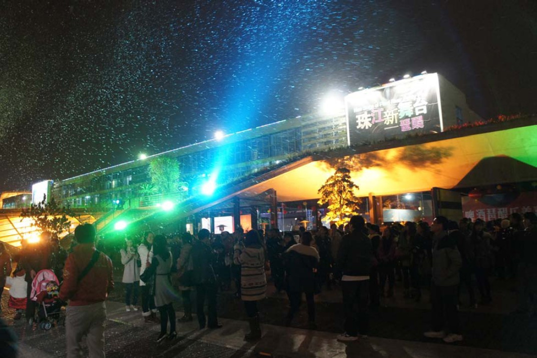 活動還沒開場,簽到處已排起了長龍。璀璨的珠江邊飄起了漫天雪花,在這醉人的氣氛下,再也擋不住到場單身男女們一顆顆火熱的心?;顒蝇F場特別安排了許多精彩節目、知名樂隊演繹,啤酒暢飲無限,現場氣氛非常熱烈。活動主辦方還特別分出了舞臺區、游戲區、交流區、自由活動區四大區域,每個區域都精心設置了有趣的破冰互動:“拋繡球、愛情大力士、桃花朵朵開、快樂兔子舞……等等”每個節目都有著特定的意義,貫穿于這些陌生男女從陌生到產生好感,再到熟悉交流的全過程。除此外,現場還設有愛情緣分墻,每位參與者可將自己的個性標簽和愛情宣言,張貼到緣分墻上,留下新年的第一個愿望。