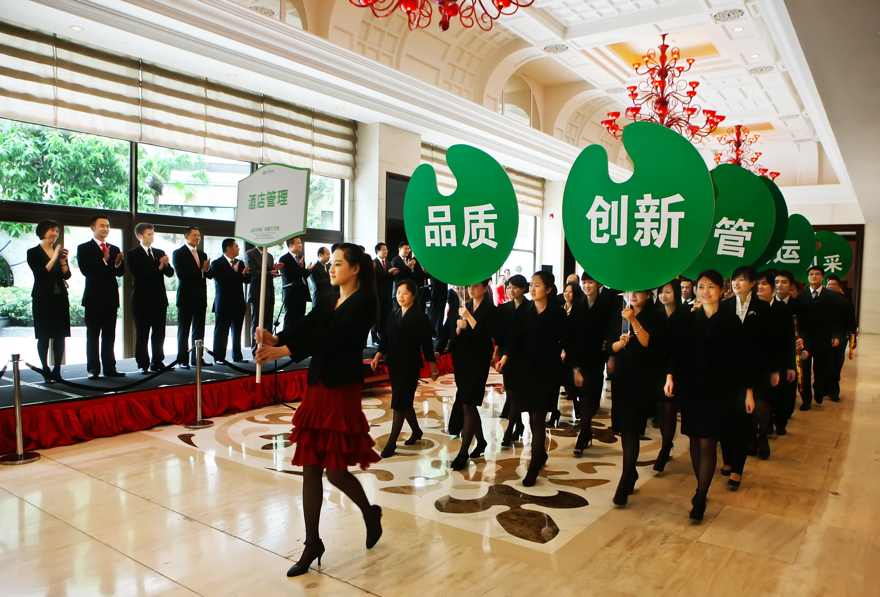 方陣入場完畢后,酒店物業事業部副總經理王凜進行酒店物業事業部《2011年品質服務年活動方案》宣講,就酒店物業事業部2011品質服務年系列活動 -- 5月份技能競賽暨趣味運動會、關愛自閉癥兒童等系列關愛活動及10月底的高端客戶答謝會等活動進行動員與工作部署。隨后,華僑城股份公司酒店物業事業部總經理金陽進行了熱情洋溢的致辭。致辭首先回顧了事業部歷年大型品牌活動,肯定了活動所取得的成效,在談到即將開展的“2011品質服務年”活動時,金陽借用第26屆世界大學生運動會的口號 -- “從這里開始”,將華僑城2011品質服務年活動與迎大運緊密結合,清晰表明“華僑城品質從這里開始”,從整個酒店物業事業部開始的決心。