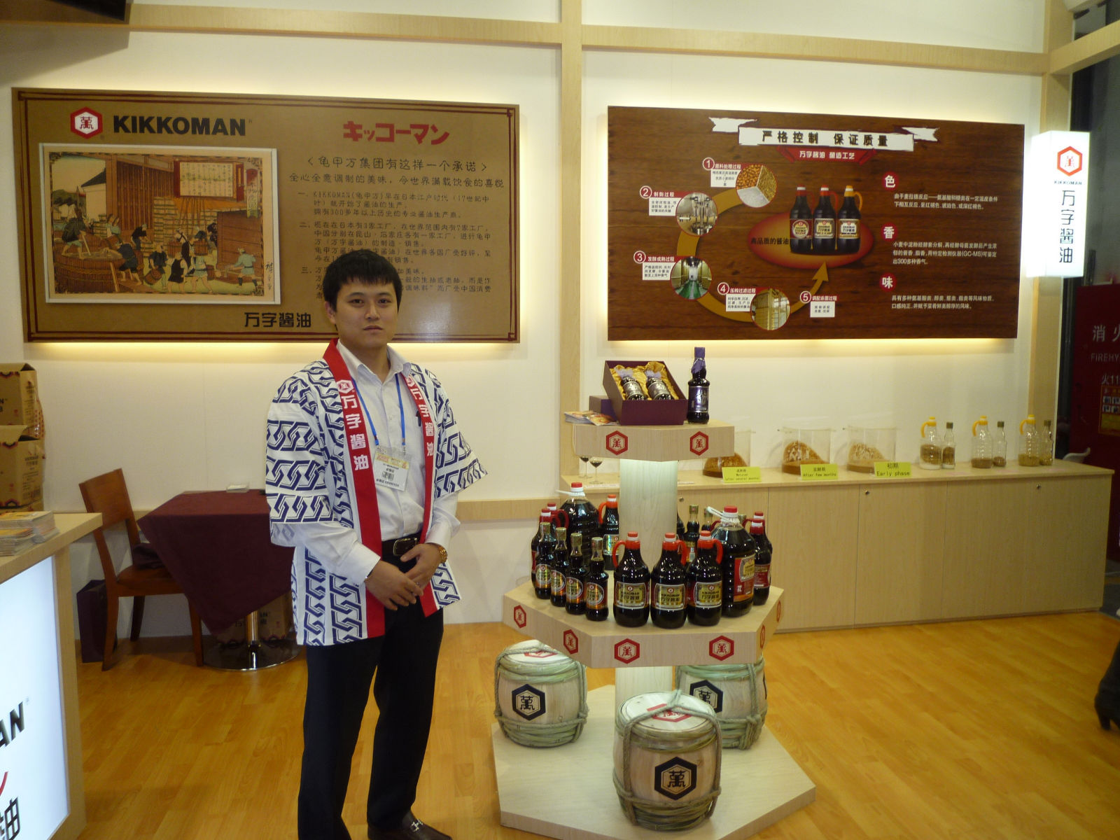 悠久的歷史和天然純釀造的高品質(zhì)是萬字醬油特色。萬字醬油不僅僅在日本,還在全世界暢銷。而這產(chǎn)品的暢銷秘訣可在龜甲萬公司的展臺(tái)里得到啟示。