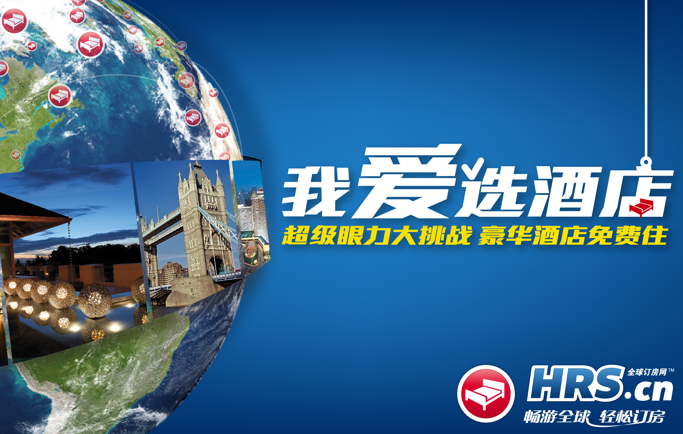 今天登場(chǎng)的最新網(wǎng)絡(luò)互動(dòng)活動(dòng)名為“我愛選酒店”,整個(gè)活動(dòng)圍繞全球訂房網(wǎng)HRS在180個(gè)國(guó)家25萬(wàn)家的酒店資源,全方位地挑戰(zhàn)網(wǎng)友的眼力和對(duì)酒店的知曉程度。題目范圍囊括了地理位置、內(nèi)部設(shè)施、酒店主題,應(yīng)有盡有。挑戰(zhàn)者的紀(jì)錄將被收錄,在2011年11月28日到12月23日活動(dòng)期間,登錄活動(dòng)頁(yè)面:campaign.hrs.cn/2011winter,直接參與酒店競(jìng)猜。前10名紀(jì)錄的最終保持者都將贏得入住五星級(jí)酒店的獎(jiǎng)勵(lì)。