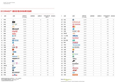 盡管2011年世界經濟仍處在掙扎中,50強品牌的總市值增長16%達到了3250億美元,略高于中國經濟的5%。