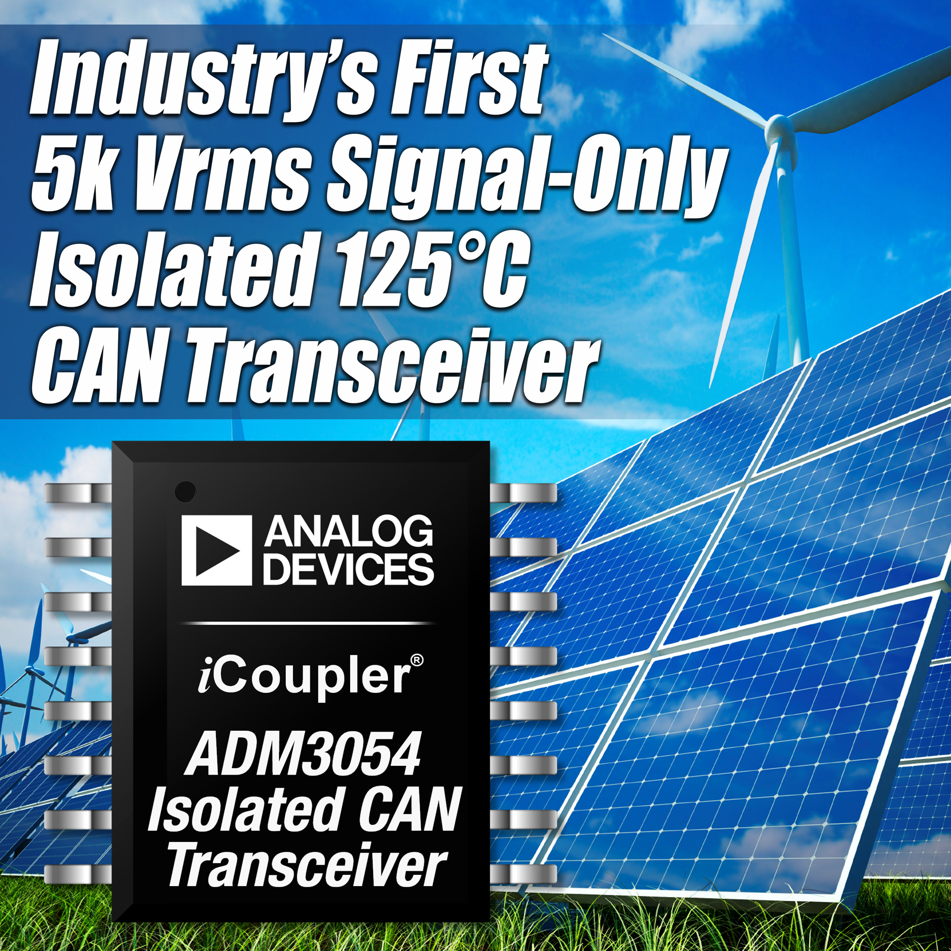 -- 高集成度 ADM3054 CAN 收發器采用 ADI 公司的 iCoupler® 數字隔離器技術進行信號隔離,同時減少了元件數量和電路板空間
