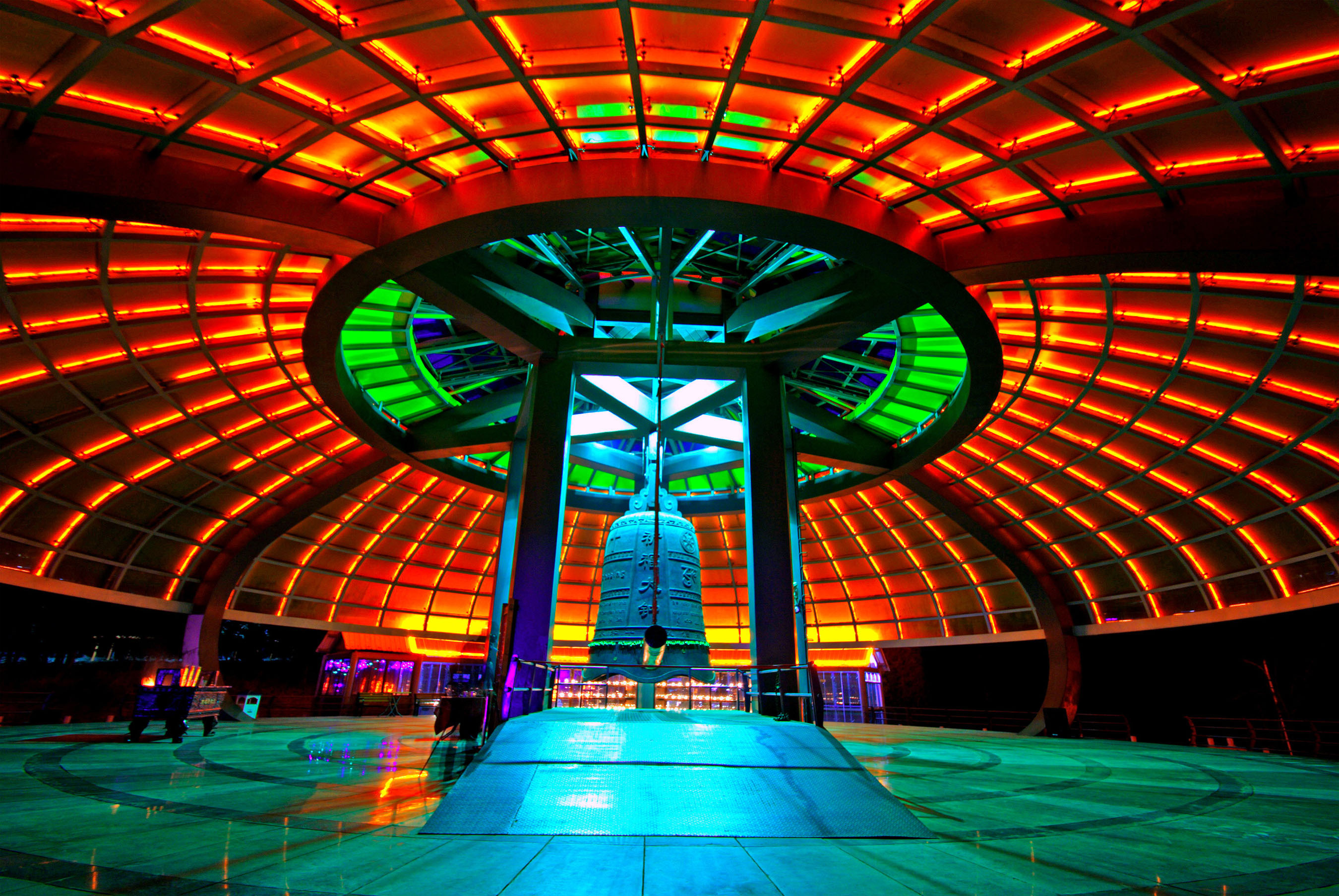 元旦零時,近千名游客和居民,以及五大宗教界代表先后撞響祈福大鐘共108聲,共同祈愿風調雨順、國泰民安、社會和諧、世界和平。他們表示,參加這種五教祈福撞響新年鐘聲,傳遞祝福,祝愿我們偉大的祖國繁榮富強,人民幸福安康,非常有意義。此外,還舉行了臘八施粥等民間文化活動,受到游客的歡迎。