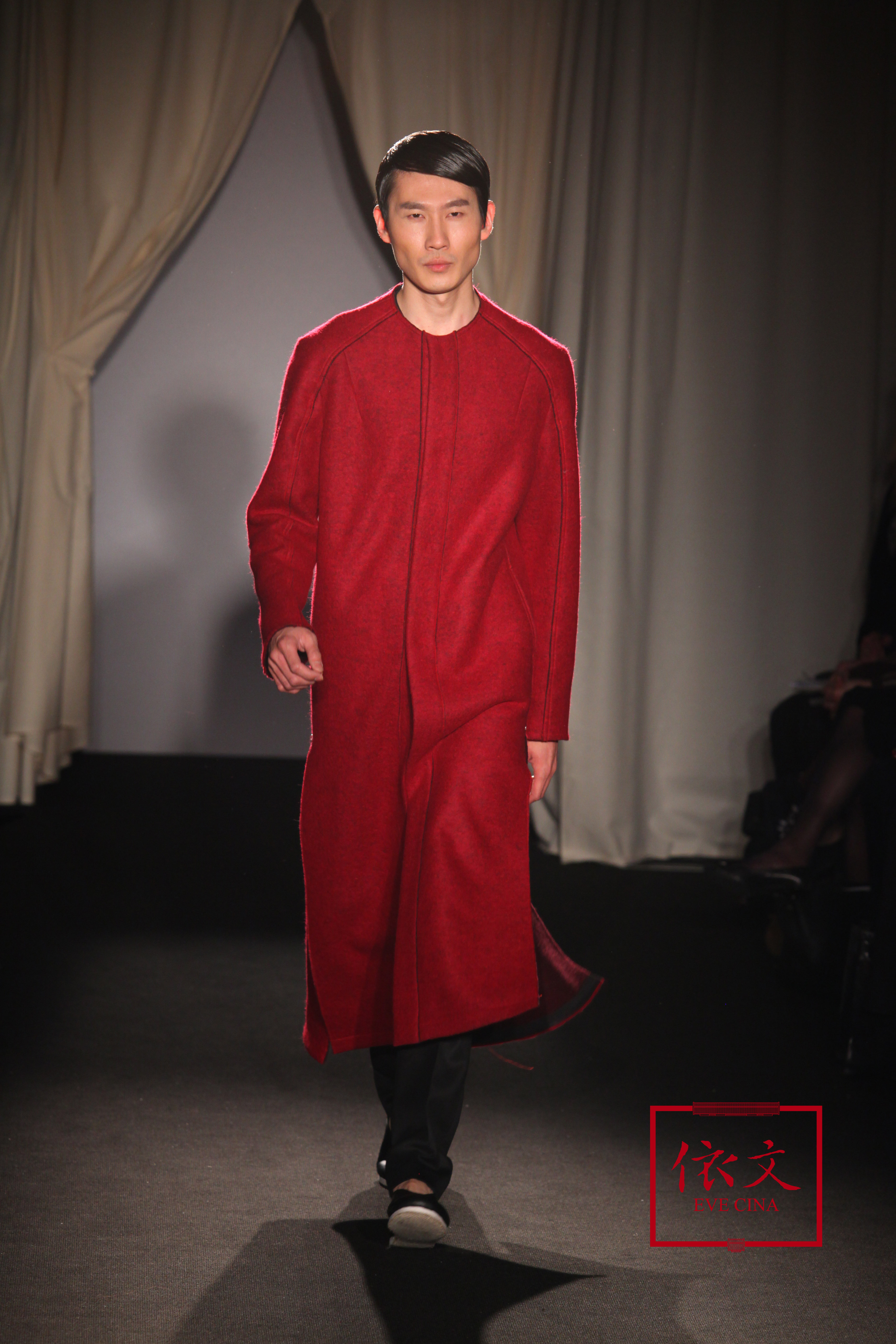 當(dāng)晚7點(diǎn),由李振,杜詩博,傅正剛,孟飛等中國知名的超級男模,在倫敦頂級秀導(dǎo)的安排下,依文(EVE CINA)淋漓盡致地演繹了中國服裝文化的精髓。整場時裝發(fā)布將焦點(diǎn)聚集于傳統(tǒng)與現(xiàn)代完美融合下的中國原創(chuàng)設(shè)計,各界手工藝大師在服裝的方寸細(xì)節(jié)之處完美展現(xiàn)了傳承百年的傳統(tǒng)手工藝術(shù):嵌繡工藝大師以精湛的手工技藝?yán)C出精致唯美的紋理圖案;精雕細(xì)琢的墨玉紐扣,實(shí)現(xiàn)了手工工藝與時尚美感的共融;創(chuàng)新縫合技藝“手工穿縫”織造出獨(dú)特的面料紋理;“以人為本”的服裝廓形,在極簡主義的裁剪方式下表達(dá)出輕松自然的中國式生活哲學(xué)。