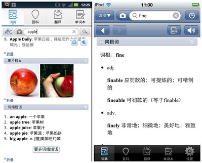 與此同時,有道詞典5.0正式版在移動端也增加了圖片詞典和同根詞查詢的功能(圖2)。圖片詞典功能,利用網易有道的搜索引擎技術對海量網絡圖片進行抓取,并通過數據挖掘技術,對圖片與詞條的相關度、圖片質量進行排序,用戶在查詢部分單詞后可以看到和單詞相關的圖片信息。而同根詞查詢功能,則可以幫助大家通過聯想記憶的方式記憶相關單詞,同時還能有效區分相似詞匯的不同含義。