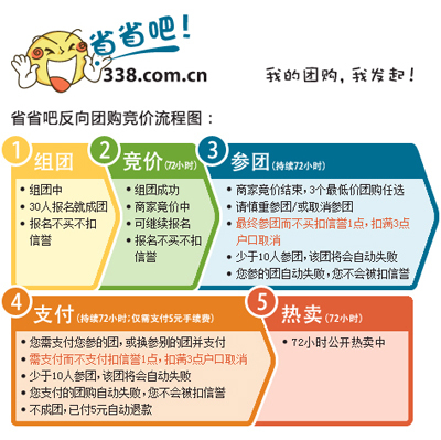 省省吧網運營團隊借鑒國外成功的團購運營模式,并在綜合調研國內用戶現有團購需求、團購體驗的基礎上,對現有團購模式進行優化和改進,推出反向團購競價的創新網購模式,希望藉此達到“在我需要時,以我的價,向我信任的商家,買我想買”的終極買家體驗。