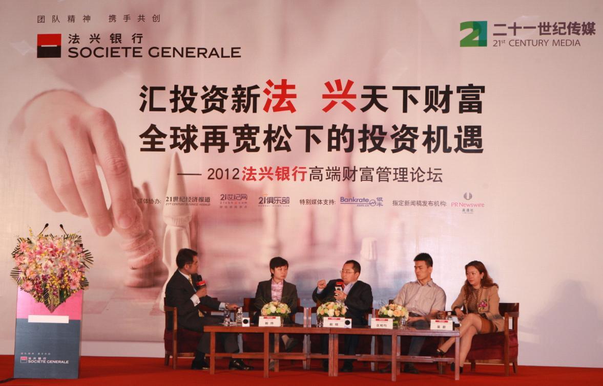 北京2012年6月6日電 /美通社亞洲/ -- 2012年6月1日,法興銀行與國內知名財經媒體二十一世紀傳媒聯合舉辦的高端財富管理系列論壇在北京拉開帷幕。論壇主題為“匯投資新法,興天下財富 -- 全球再寬松下的投資機遇”,邀請國內知名經濟學者、投資業界專家與媒體人共聚一堂,解讀當前國際國內的經濟局勢,探討“再寬松”下的投資機遇。