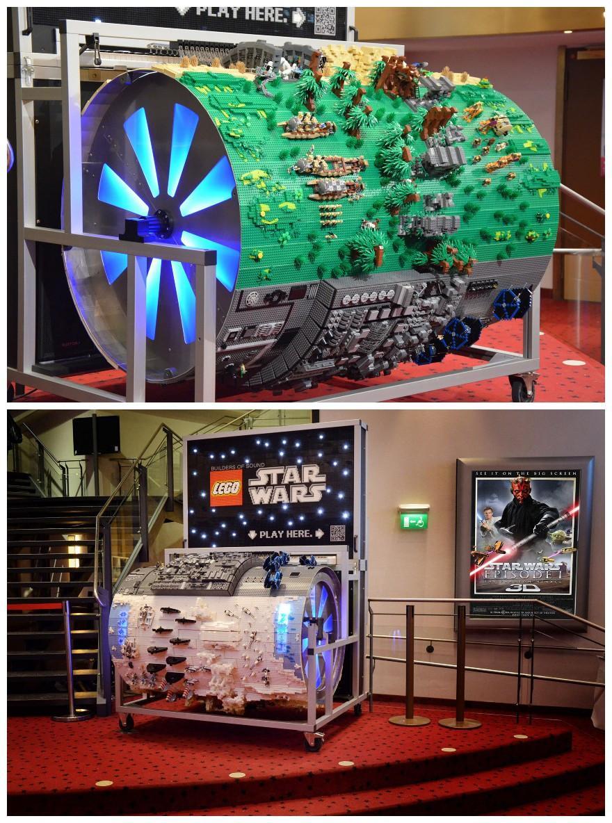 作為喬治·盧卡斯《星球大戰(zhàn)系列》電影長(zhǎng)期的合作伙伴,伴隨電影《星球大戰(zhàn) -- 第一部》3D版在2012年初于全球院線的上映,樂高也在探求新的方式,為《星球大戰(zhàn)》這一歷史經(jīng)典再筑新里程碑 -- 而這次他們想到了聲音。在樂高認(rèn)證的職業(yè)拼砌師Rene Hoffmeister 的幫助下,樂高集團(tuán)利用樂高積木和星戰(zhàn)人偶搭建了經(jīng)典的星球大戰(zhàn)場(chǎng)景,并用風(fēng)桶上的這些錯(cuò)落有致的場(chǎng)景組合在一起,通過體驗(yàn)者手搖風(fēng)桶來(lái)激活后面的管風(fēng)琴,共同奏響星戰(zhàn)的經(jīng)典音樂。這個(gè)由樂高顆粒和人偶拼砌而成的“樂高星球大戰(zhàn)八音箱”正在德國(guó)的各大影院進(jìn)行巡回展示,并會(huì)被德國(guó)的樂高樂園最后收藏,供消費(fèi)者進(jìn)行互動(dòng)體驗(yàn)。這也成為了樂高又一大吸引眼球的創(chuàng)新營(yíng)銷手段。