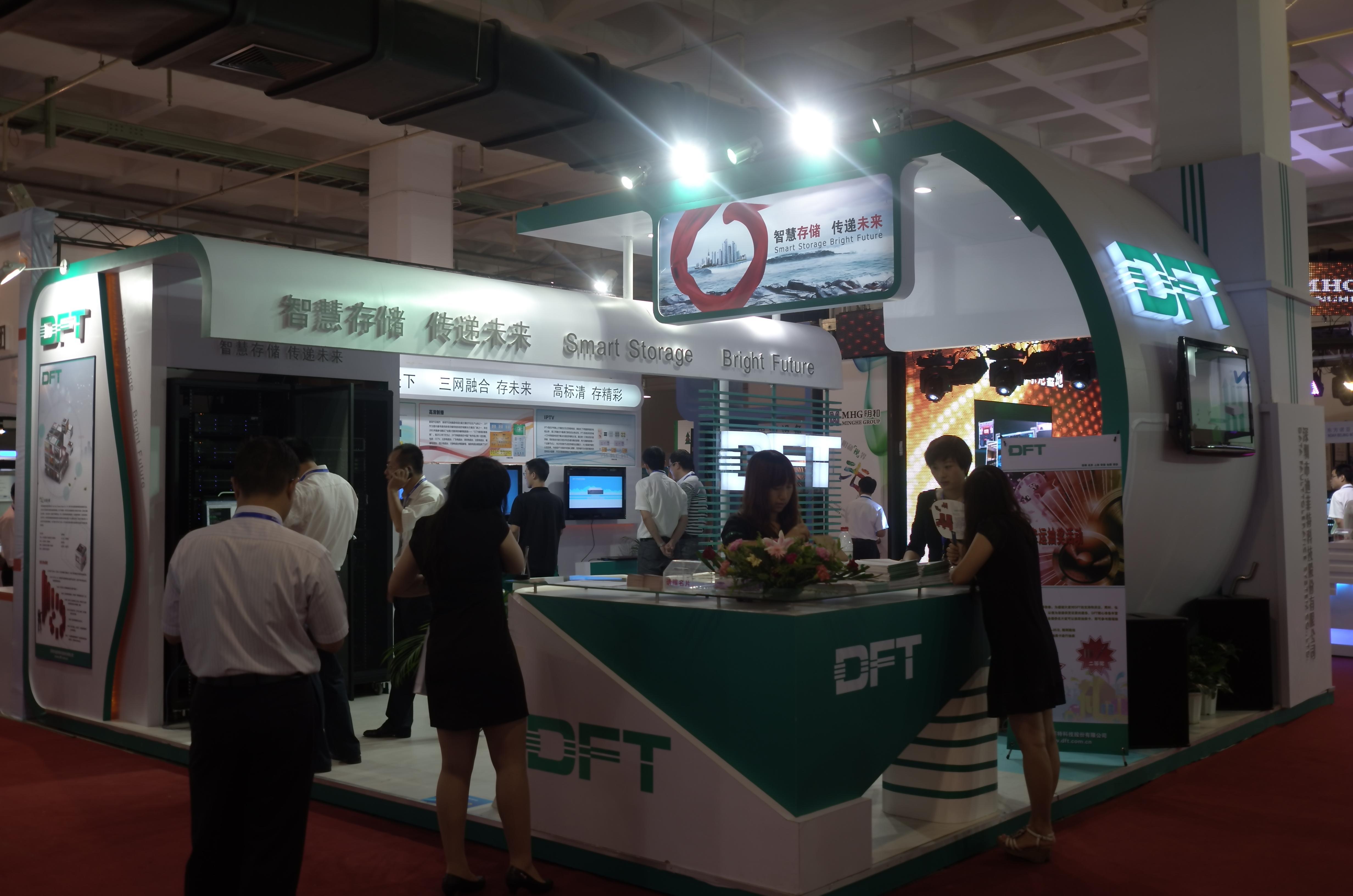 DFT展臺設計獨具理念,新型別致的造型開館即吸引了不少觀眾的眼球。展臺分為“品牌、解決方案和新品發布”三個主題區。DFT品牌展區用大幅海報和企業形象video向觀眾介紹了DFT公司的概況和發展歷程等,直觀、動態地展現了DFT企業形象和這十多年來的發展成就,特別是在廣電行業的成就和建樹。開館第一天,DFT展臺就迎來了大批來展臺參觀的新老客戶。據不完全統計,開館首日(22日),DFT展臺共接待客戶近150人次。