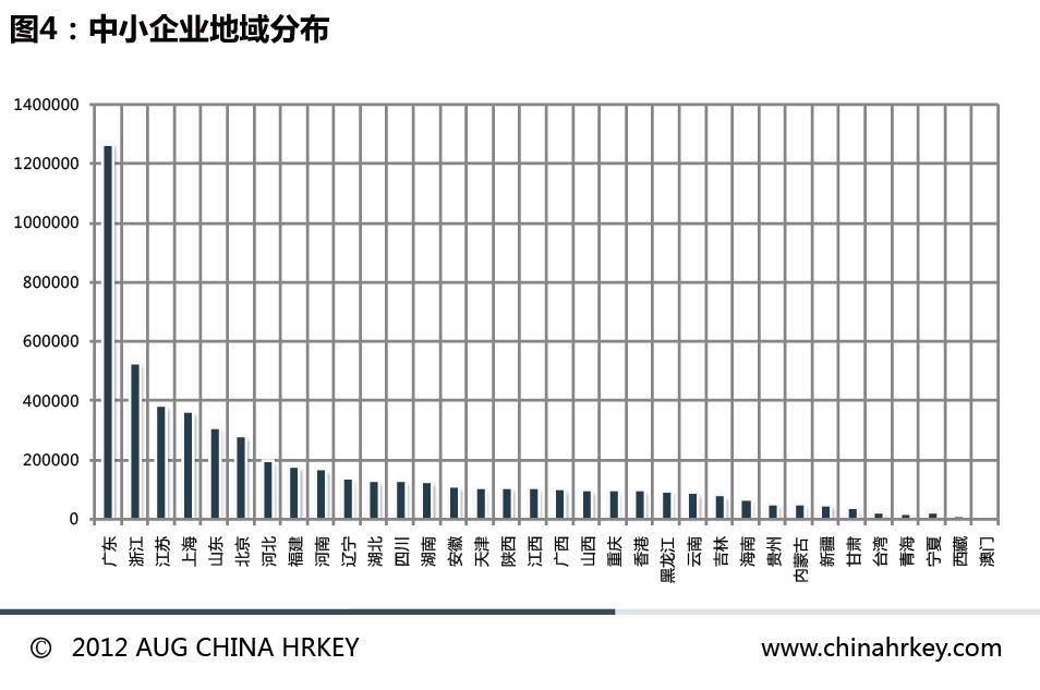 珠三角、長三角占到中小企業的數量的30%,其他地區約占40%,體現出經濟發達地區也是中小企業最活躍的區域。