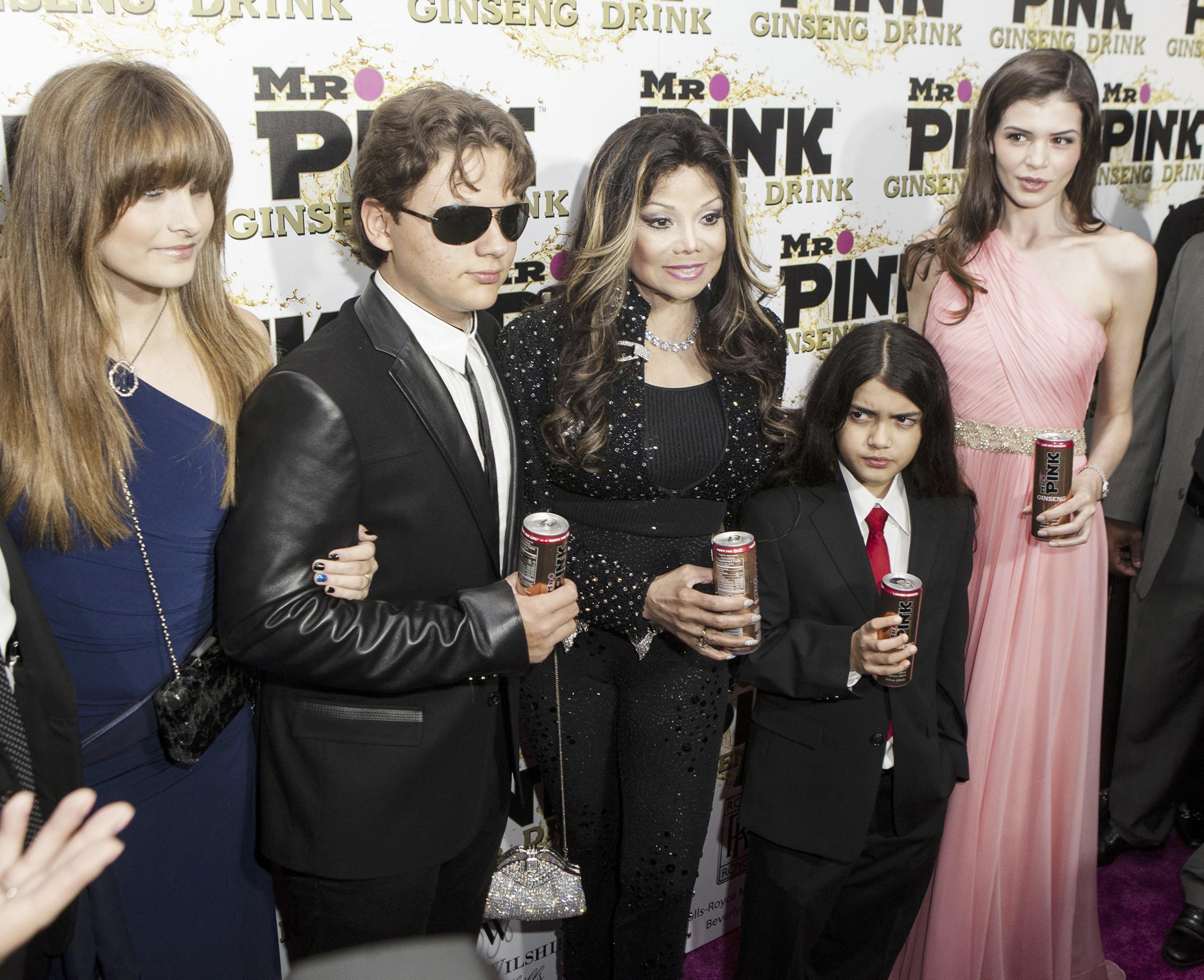 洛杉磯2012年10月17日電 /美通社/ -- 2012年10月11日晚,比弗利威爾謝麗晶酒店 (Regent Beverly Wilshire Hotel) 可謂明星薈萃,好萊塢演藝圈大腕、職業運動員和音樂人悉數到場,為他們所有人交口稱贊的 Mr. Pink Ginseng Drink 最新健康飲品的發布助威。威爾謝大街和著名的羅迪歐大道上站滿了粉絲,他們都在等候自己所喜愛明星的到來。杰克遜的三個孩子普林斯 (Prince)、帕里斯 (Paris) 和布蘭基特 (Blanket) 也在姑媽拉托亞 (LaToya) 的陪同下走上了紅地毯。林賽-羅韓 (Lindsay Lohan)、安娜-肯德里克 (Anna Kendrick)、吉莫拉-李-西蒙斯 (Kimora Lee Simmons)、奧德利娜-帕特里奇 (Audrina Patridge)、韋恩-格雷茨基 (Wayne Gretzky)、馬特-坎普 (Matt Kemp)、梅塔-沃爾德-皮斯 (Metta World Peace)、邁克爾-貝 (Michael Bay)、羅伯特-夏皮羅 (Robert Shapiro)、大衛-阿奎特 (David Arquette)、馬里奧-洛佩茲 (Mario Lopez) 等明星也到場為這款新鮮健康飲品的發布助陣。