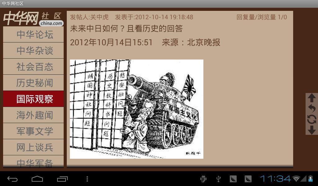 中華網社區電視客戶端(android 版)產品 http://u.china.com/android/club_tv/ 匯聚中華網精華版社區欄目的豐富資源,交互簡潔明了,內容圖文并茂,欄目分為:軍事、時政、生活、文娛、貼圖、原創,6大版塊,覆蓋了中華網社區 WEB 的精品資源,數據與官網時時同步,使電視用戶能夠同步參與到 WEB 社區的討論中來。