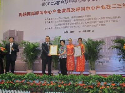 北京2012年12月20日電 /美通社/ -- 2012年12月13日,由中國國際航空公司主辦,ICMI國際客戶管理學(xué)院(中國區(qū))承辦的“國航呼叫中心高峰論壇暨CCCS客戶聯(lián)絡(luò)中心標(biāo)準(zhǔn)啟動(dòng)儀式”在北京豐榮君華酒店成功舉辦。中國國際航空公司商務(wù)委員會(huì)銷售部副總經(jīng)理黃峰女士,中國國際航空公司電話銷售服務(wù)中心高級(jí)經(jīng)理王延紅女士、中國國際航空公司電話銷售服務(wù)中心成都中心高級(jí)經(jīng)理尹紅女士,電話銷售服務(wù)中心上海中心項(xiàng)目經(jīng)理馬海英女士以及來自國航電話銷售服務(wù)中心北京中心、運(yùn)營管理部、市場(chǎng)部、成都中心、上海中心、北美中心、歐洲中心、日韓中心、深航中心、北京聯(lián)通中心、四川信產(chǎn)中心等部門的八十多位領(lǐng)導(dǎo)和同事出席了本次大會(huì)。CCCS 客戶聯(lián)絡(luò)中心標(biāo)準(zhǔn)委員會(huì)主席、ICMI國際客戶管理學(xué)院(中國區(qū))總裁呂克勤先生,招商銀行遠(yuǎn)程銀行總經(jīng)理徐子穎女士也出席了本次大會(huì)。
