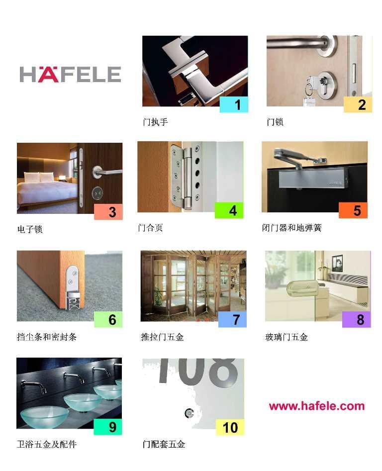 海福樂是北京銀泰中心柏悅酒店、國(guó)家博物館、北京合生霄云路8號(hào)、天津津門津塔、上海陸家嘴國(guó)金中心、杭州洲際酒店、三亞鳳凰島、深圳益田威斯汀酒店等項(xiàng)目的五金供應(yīng)商。更多信息,請(qǐng)?jiān)L問:www.Hafele.com.cn 。