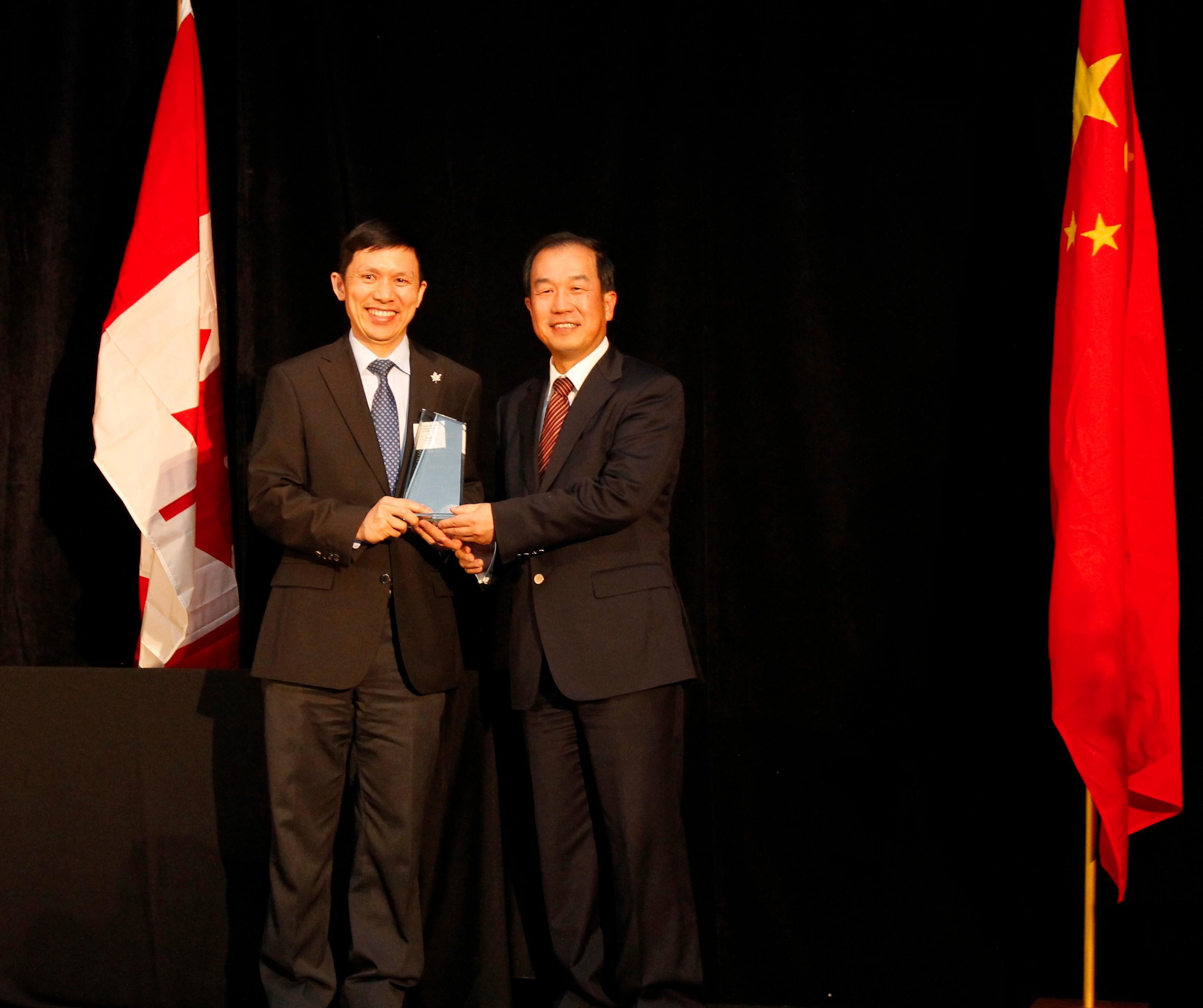 北京2012年12月24日電 /美通社/ -- 2012年11月27日,中國(guó)國(guó)際航空股份有限公司(以下簡(jiǎn)稱“國(guó)航”)榮獲在加拿大蒙特利爾舉行的第34屆加中貿(mào)易理事會(huì)(CCBC)年會(huì)杰出企業(yè)獎(jiǎng) -- 銅獎(jiǎng),以表彰國(guó)航在提升產(chǎn)品和服務(wù),促進(jìn)中加之間人員、文化、經(jīng)貿(mào)交流和合作方面的貢獻(xiàn)。溫哥華營(yíng)業(yè)部總經(jīng)理徐俊鴻代表公司在加拿大總督 David Johnston 和與會(huì)300多名中加商界嘉賓的掌聲中,從中國(guó)駐加拿大大使章君賽手上接過(guò)了2011-2012年度杰出企業(yè)獎(jiǎng)的獎(jiǎng)牌。