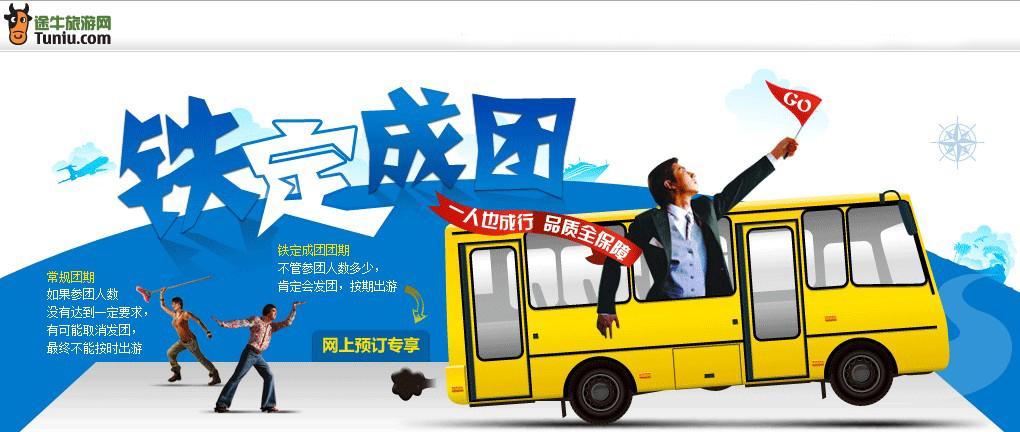 北京和上海2012年12月28日電 /美通社/ -- 相信經(jīng)常出游的朋友,都遭遇過“人數(shù)不夠未能成團”的遺憾。心儀已久的目的地,期盼已久的行程,就這樣失之交臂,不得不說非常遺憾。現(xiàn)在,途牛旅游網(wǎng)推出“鐵定成團”線路,“一人也成行,品質(zhì)全保障”,游客采用網(wǎng)上預(yù)訂方式就可享受按時出游。