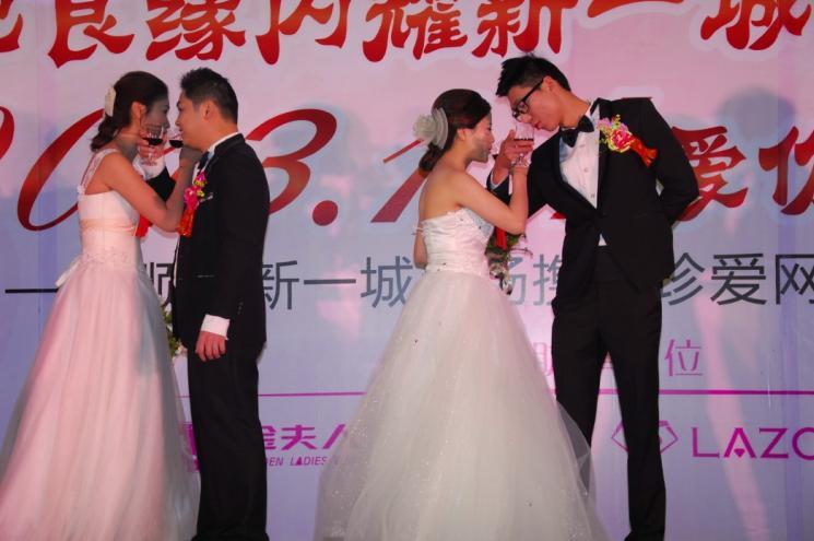 據主辦方新一城介紹,本次與珍愛網攜手合作的“2013.1.4愛你一生一世”集體婚禮對于9對有結婚打算或即將步入婚姻殿堂的新人來說意義非凡。其中有一對新人還是一大早去民政局排隊領證,中午才趕來的,在2013年1月4日“愛你一生一世”這個歌特別的日子成為合法夫妻并且參加集體婚禮,對于他們來說確實賦予了不一樣的意義。
