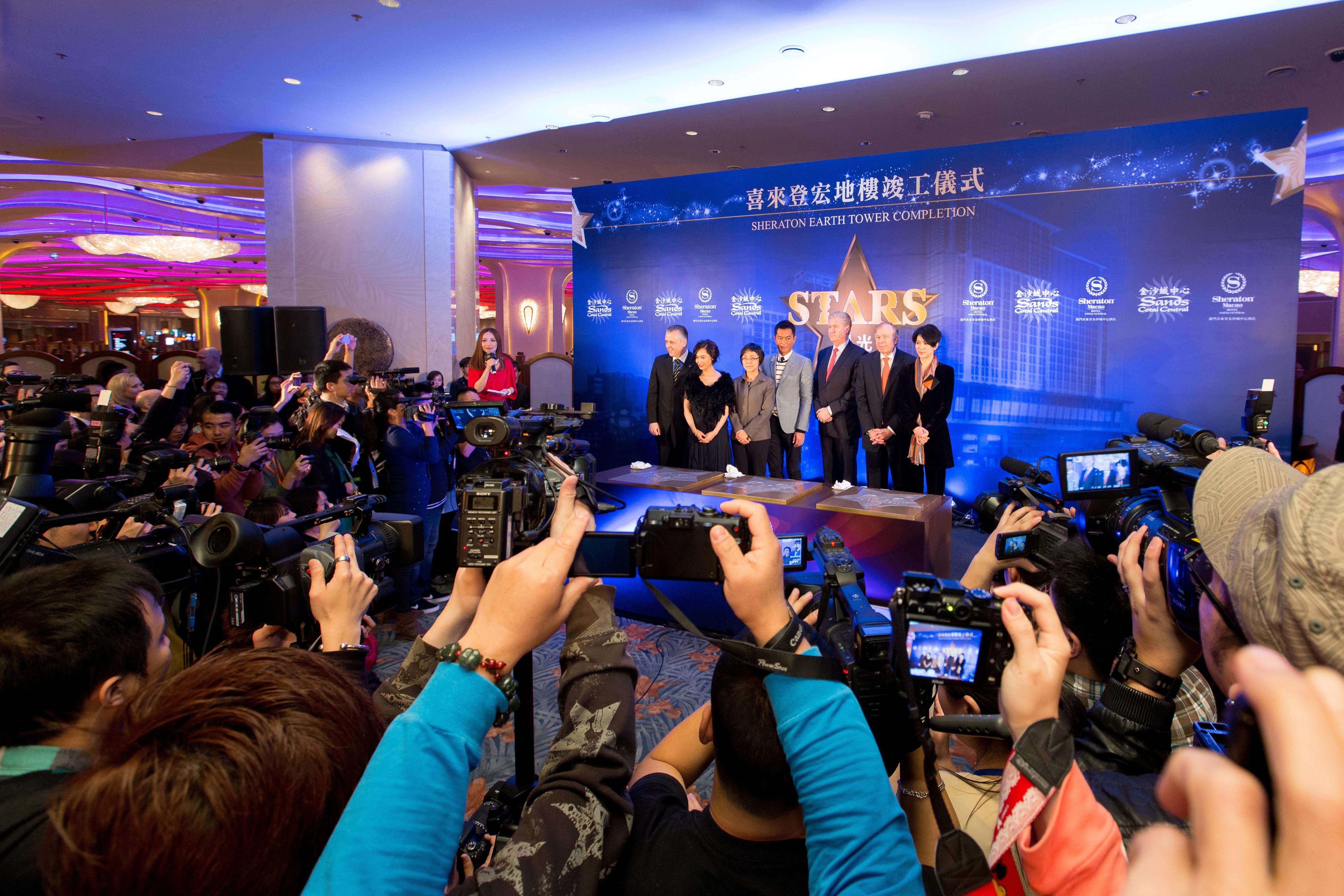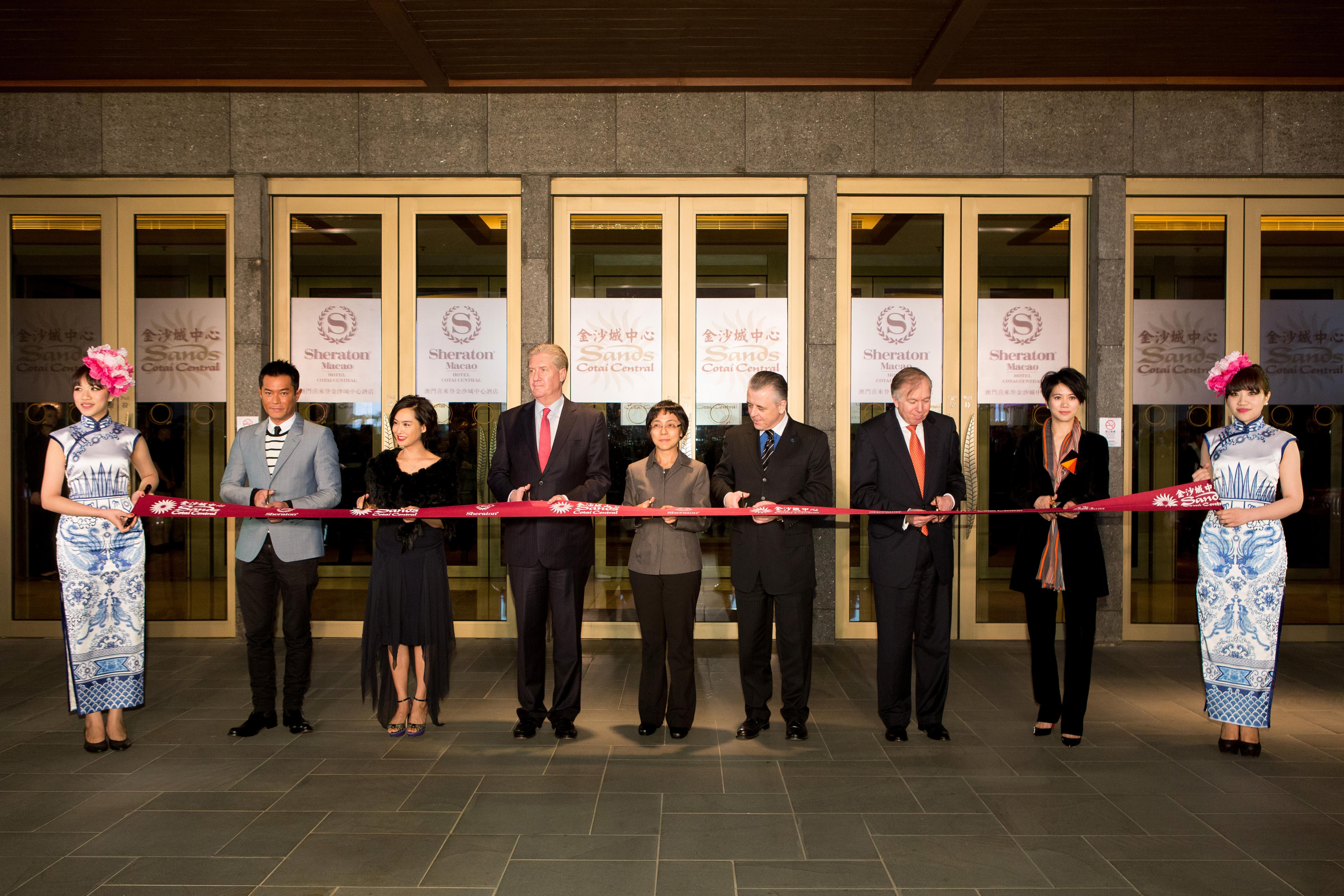 金沙城中心于星期一以一場星光熠熠的活動慶祝澳門喜來登金沙城中心酒店宏地樓正式竣工,當(dāng)中包括鼓樂及醒獅表演、燃放爆竹以及剪彩儀式。宏地樓設(shè)有2,067間裝潢雅致的全新客房及套房,將酒店的總房間數(shù)量增加至3,896間,使酒店成為全澳門較大型以及喜達(dá)屋酒店與度假村國際集團(tuán)旗下全球較大的酒店。從左面第二位開始:古天樂、朱茵、金沙中國有限公司總裁兼行政總裁愛德華-卓思先生、澳門特別行政區(qū)政府旅游局局長文綺華女士、澳門喜來登金沙城中心酒店董事總經(jīng)理若瑟夫-道普先生、金沙中國有限公司行政副總裁兼營運(yùn)總裁大衛(wèi)-西斯克先生、袁詠儀