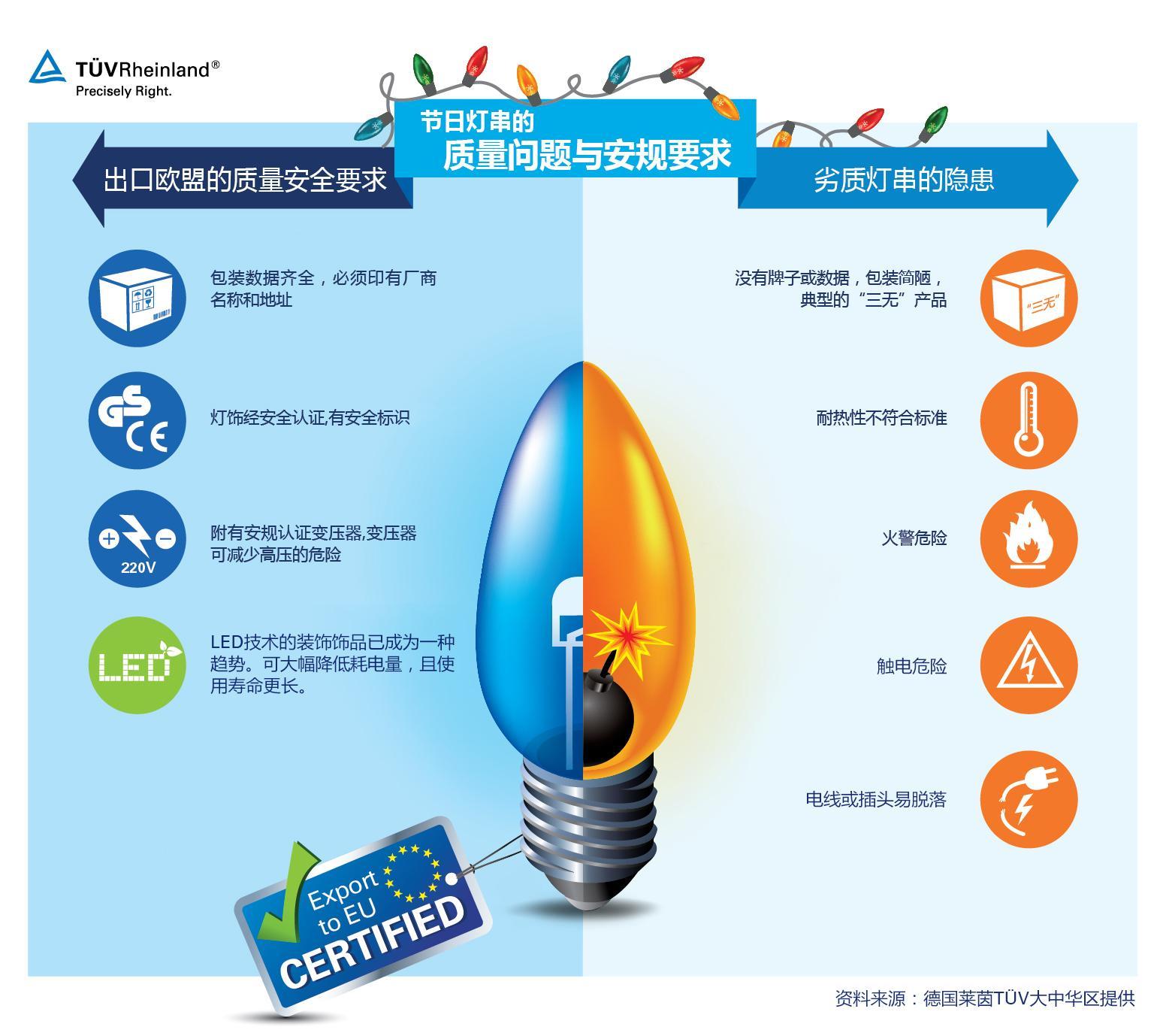 以下幾點是德國萊茵TUV對消費者在購買電子裝飾燈飾時的幾點建議: