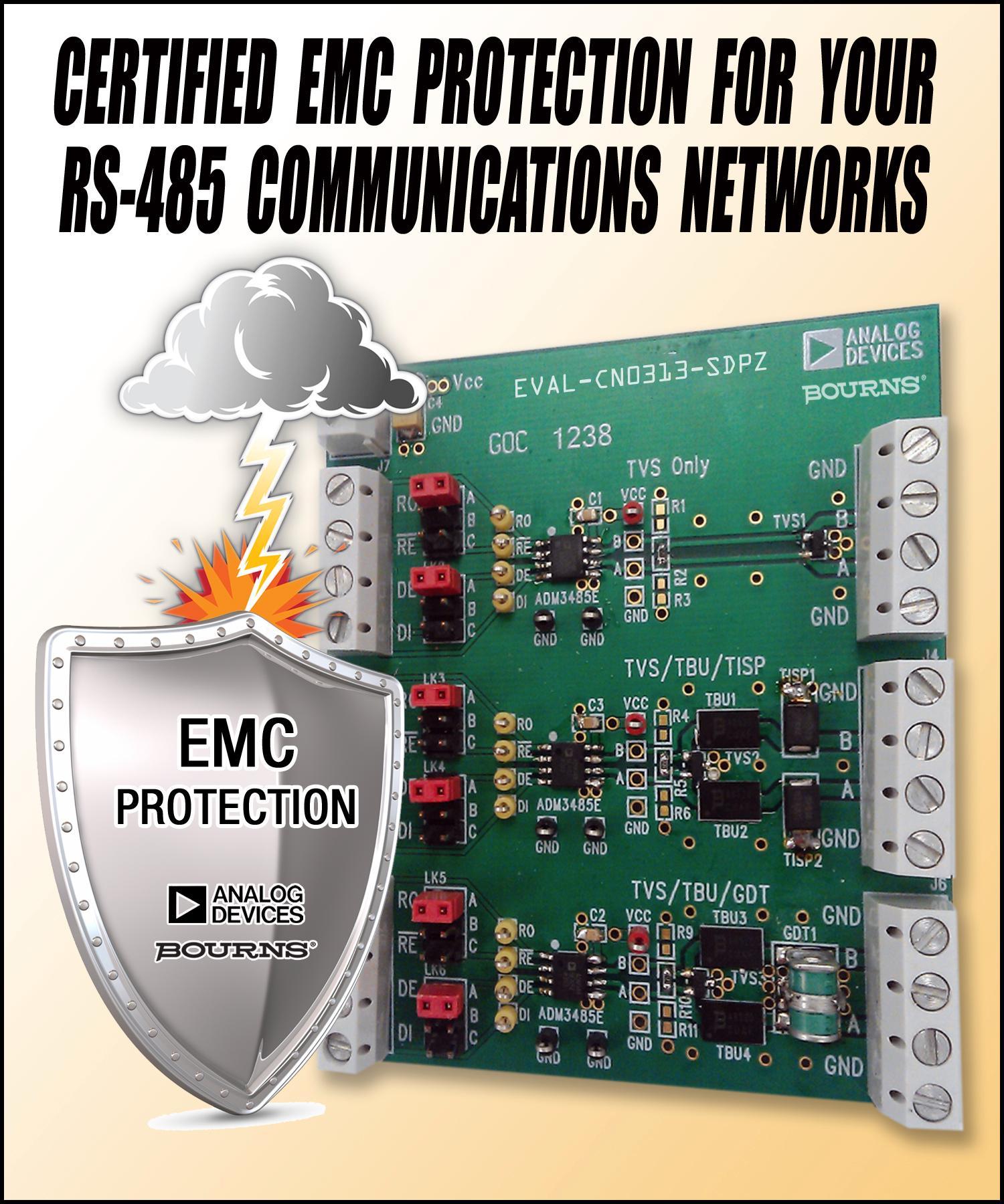 北京2013年2月28日電 /美通社/ -- Analog Devices, Inc.(NASDAQ:ADI),全球領先的高性能信號處理解決方案供應商,攜手業(yè)界領先的電子元件制造商和供應商柏恩斯(Bourns)公司,近日推出業(yè)界首款通過認證的 RS-485評估板 EVAL-CN0313-SDPZ,用于保護工業(yè)和儀器儀表設備不受EMC(電磁兼容性)損害。兩家公司均提供EVAL-CN0313-SDPZ 電路板,內置 ADI的 ADM3485E、3.3 V RS-485收發(fā)器和 Bourn 公司的各種電路保護設備,符合 IEC61000-4-2/4/5 ESD(靜電保護)、EFT (電快速瞬變)和功率電涌規(guī)格要求。該電路板是 ADI 公司 Lab? 參考電路庫中的一部分,包括電路筆記、測試數(shù)據(jù)和結果,幫助工程師們在電機控制、并網轉換器和可編程邏輯控制器等應用中降低設計風險。所有經 ADI 認證的經銷商和部分經 Bours 認證的經銷商處均可以購買該電路板。