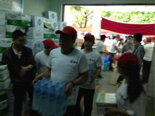 除此之外,為更好的配合醫院救助工作,剩余的志愿者針對救急物資發放、醫院現場環境清理,組成2只支援小分隊參與救援。在第一時間將帶來的牛奶等救急物資分配給現場群眾的同時,更積極對在地震中受到破壞的墻面、走廊進行清理、打掃,為緊急救護開辟整潔、高效的綠色通道。