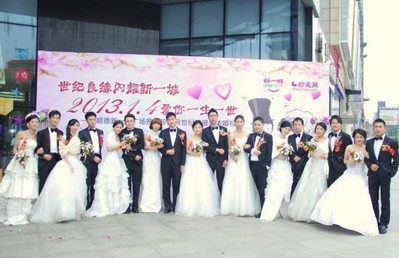 北京和天津5月8日電 /美通社/ -- 2013年5月1日,由中共塘沽工委、塘沽管委會和濱海新區民政局共同主辦的2013濱海青年集體婚典于塘沽市民廣場盛大開展,天津市團市委劉書記、情感專家黃菡教授以及珍愛網高層代表均出席了本次活動。此次集體婚典共邀請了包括新人、家屬和優秀青年代表等五百多人參加,40對由國內較大婚戀網站珍愛網推選出的新婚男女在集體婚禮中經歷了一次神圣浪漫的洗禮。珍愛網此次聯手塘沽政府,向廣大適婚青年表達關愛,借集體婚禮的形式傳達積極向上的婚姻觀和生活觀。