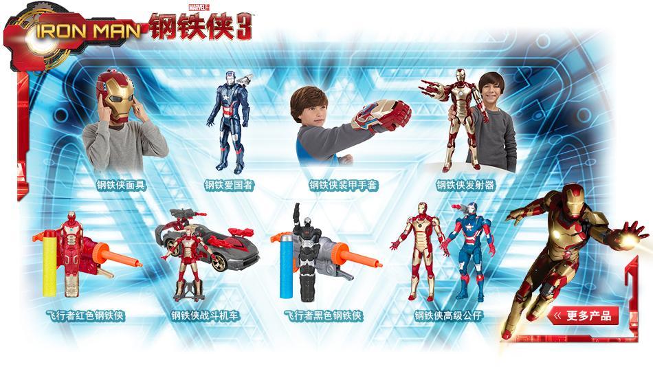 《鋼鐵俠3》仍在熱映,戰無不勝的鋼鐵俠是迪士尼漫威系列中的經典人物。家長們在迪士尼官方玩具店將覓到目前最具高科技的一款面具設計。正如電影中其神奇的發射能力,只要輕輕按下開關,面具兩邊即可彈出投射物。閃閃發光的雙眼以及定位系統能使小朋友們在發射時瞄準目標,同時自動發聲,說出電影中的臺詞。此外,設計超酷的鋼鐵俠人物之鋼鐵愛國者,擁有5處可拼接處,可以讓小朋友盡情變換造型。