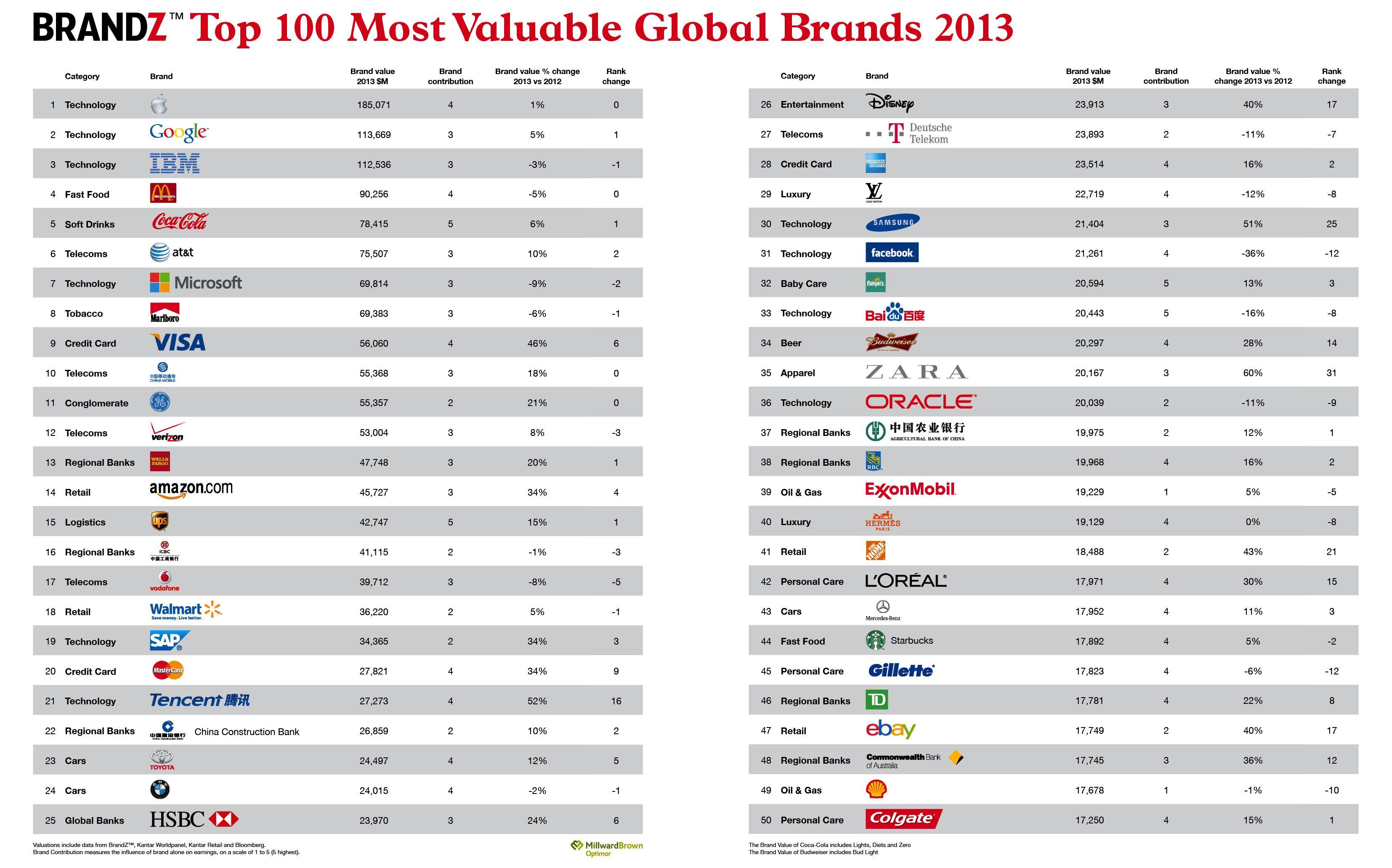 2013年BrandZ全球最具價值品牌100強排行榜