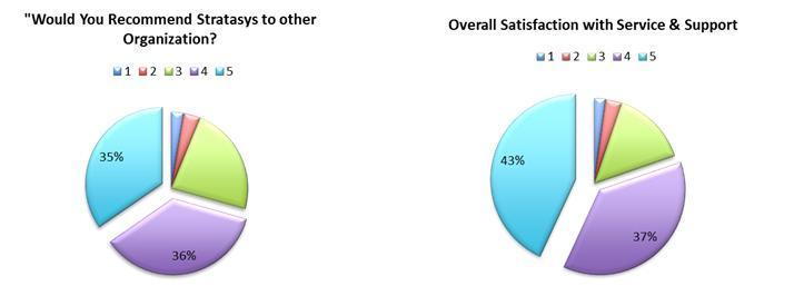 一直以來,Stratasys 公司都認真履行為客戶提供優質產品與服務的承諾,公司在每年都會進行一輪全面的 Stratasys 客戶滿意度調查。在剛剛結束的2012年的調查中,有超過67%的亞太及日本地區客戶參與了用時30分鐘的獨立調查,體現出客戶對 Stratasys 公司的高度支持。